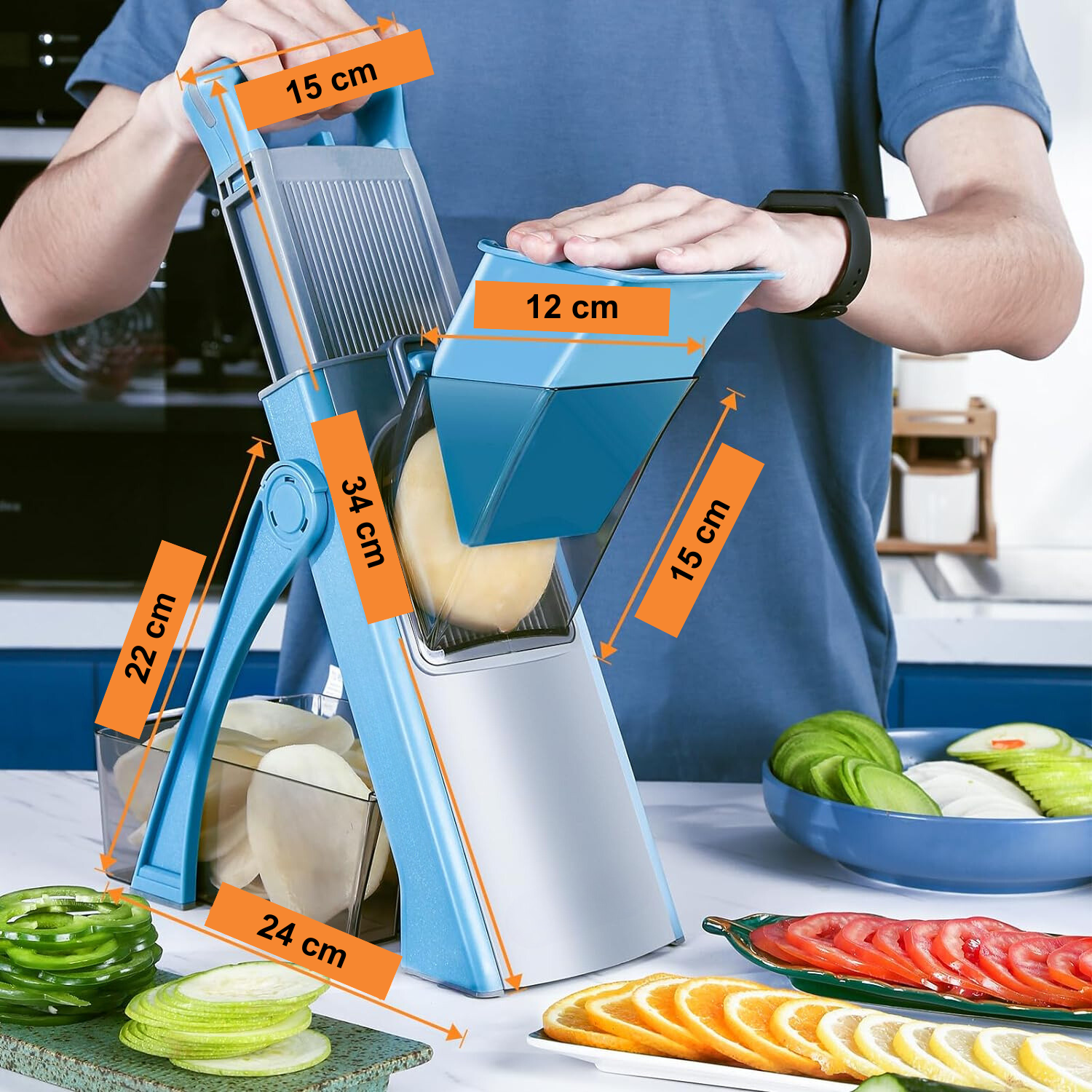El cortador Cut Chef está diseñada para que la preparación de alimentos sea más rápida y eficaz. Basta con ajustar el grosor y deslizar las verduras o frutas por la afilada cuchilla para obtener cortes perfectos. Desde rodajas finas como el papel hasta cortes gruesos, lo hace todo sin esfuerzo. Esta increíble herramienta es versátil, fácil de limpiar y está hecha para durar, dándole la confianza para probar nuevas recetas y elevar su juego de cocina.